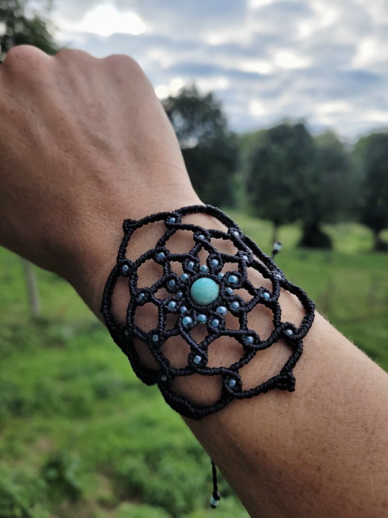 • Fermeture grâce à un nœud coulissant, ce bracelet s’adapte parfaitement à votre poignet et peut se porter à la hauteur souhaité sur le bras