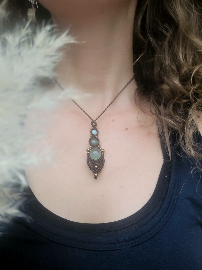 Chaque pierre et chaque perle, comme tous les composants de mes créations, sont uniques. C’est pourquoi le bijou que vous recevrez peut présenter de très légères différences avec les photos de présentation : un véritable objet d’art, une pièce unique pour une personne unique.